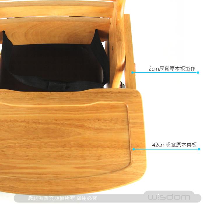 採用高級原木板製成,富有質感,堅固耐用◎桌板固定設計,不夾手|◎展開安全固定扣設計|◎可收折設計,不使用時不佔用空間|•顏色:原木色<br/>•材質:木材<br/>•餐椅全高度=79cm<br/>•座椅高度=54cm<br/>•椅子-長*寬=33x33cm<br/>•桌子-長*寬=27*42cm<br/>•適用年齡:6-36個月<br/>•檢驗字號:M64630<br/>•包裝尺寸:84x42x50cm<br/>•產地:,